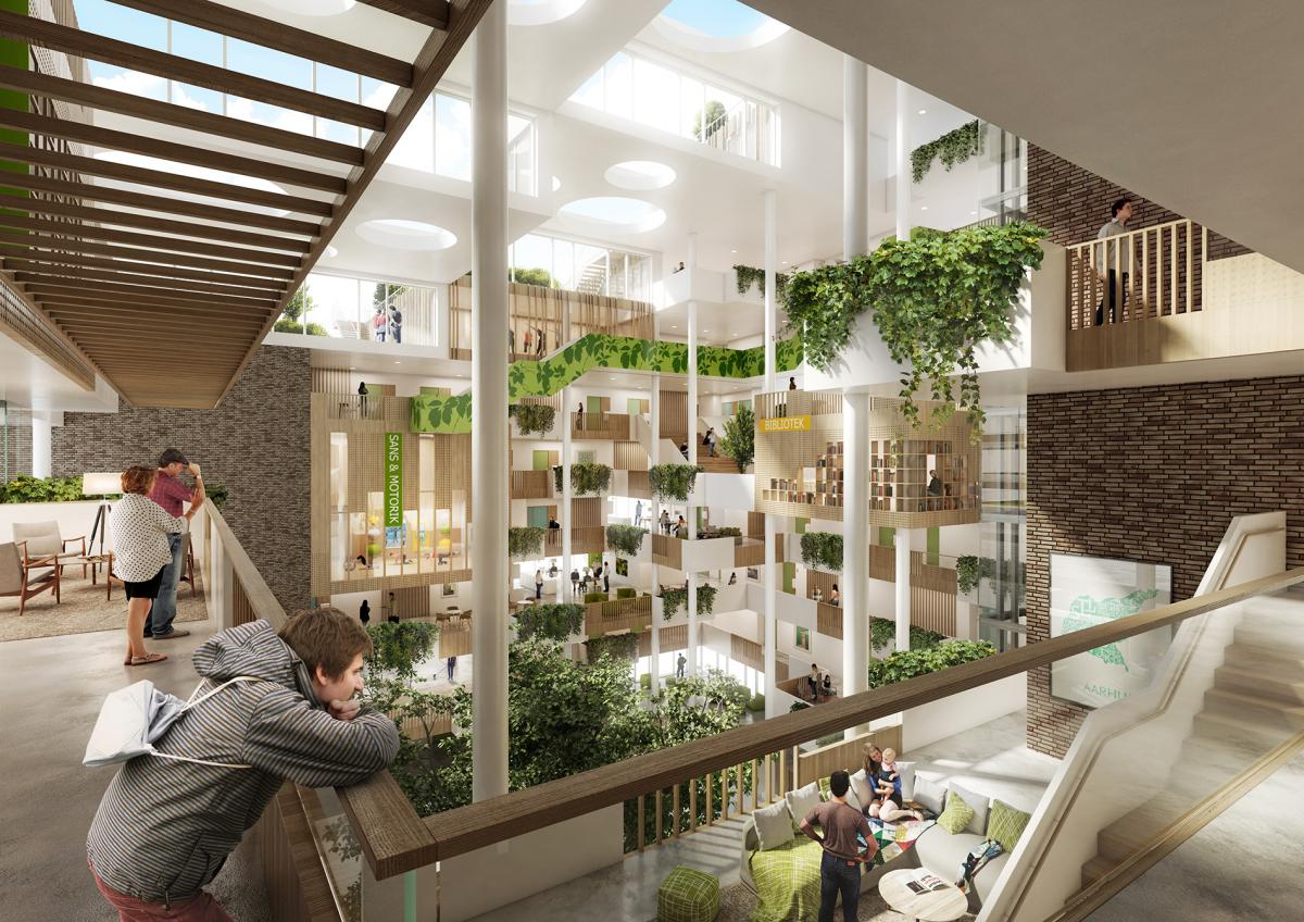 Entonces porque no cambiar también los interiores, no tan solo los objetos con los que convivimos. ¿Son las residencias para ancianos la solución? o quizás deberíamos volver la mirada a las familias intergeneracionales, antes de que triunfará el modelo nuclear. Volver atrás no es posible pero podemos crear nuevos hogares en el que diferentes generaciones sin relación consanguínea, puedan compartir espacios, como en el proyecto de AART previsto para Arhus. Están previstos desde zonas de juego para los niños hasta un puerto para pequeñas embarcaciones o espacios comunales destinados a conectar con el resto de la población de Aarhus.