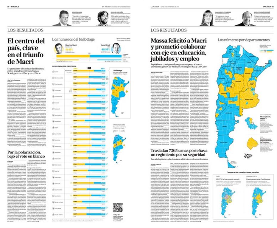 “La Nación” lleva un año cosechando premios: de la Society of News Desing a nivel mundial, de ADEPA en el ámbito local y resultó elegido en los premios Malofiej, los Pulitzer de infografía como The Best of Show por sus gráficos de la edición papel.