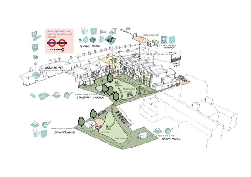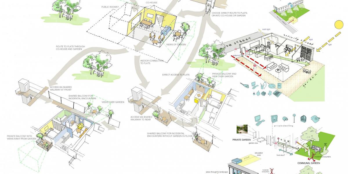 Otra opción sería tomar la iniciativa y diseñar nuestro propio hogar desde cero como en el OWC, Old Women Cohousing; un grupo de mujeres creo este proyecto de casas independientes que comparten un parque comunal y un espacio en el que desayunan, se reúnen y realizan talleres. Previsto solo para ellas, mujeres. El estudio de Pollard Thomas Edwards las asistió en el diseño.