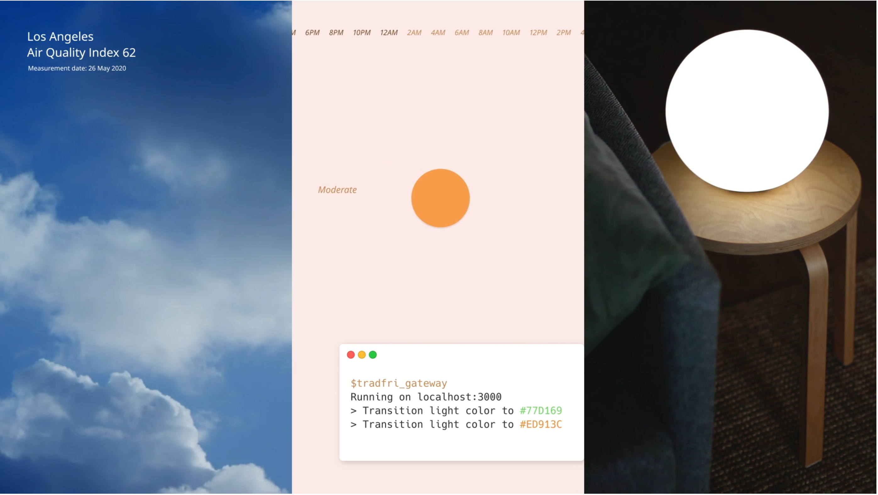 Los Everyday Experiments de IKEA y SPACE 10 invitaron a diferentes estudios para que propusieran escenarios en los que la tecnología del mañana definiría nuestro hogar. Desde Home Applications que posibilita generar una iluminación a partir de los tonos de una imagen o que una luminaria que refleje en sus colores cual es la calidad del aire que vamos a respirar al salir. Otra que me pareció curiosa fue Room Shuffle realidad aumentada que nos permitiría simular la iluminación de una estancia en unas coordenadas precisas, época del año, momento del día y climatología específicas y optimizar así la distribución, evitar que la colocación de mobiliario diera lugar a una situación de deslumbramiento, zonas de trabajo mal iluminadas, …. Porque la luz tanto natural como artificial es capaz de sacar lo mejor de los espacios, pero también de arruinarlos sino la pensamos a la vez que el proyecto.