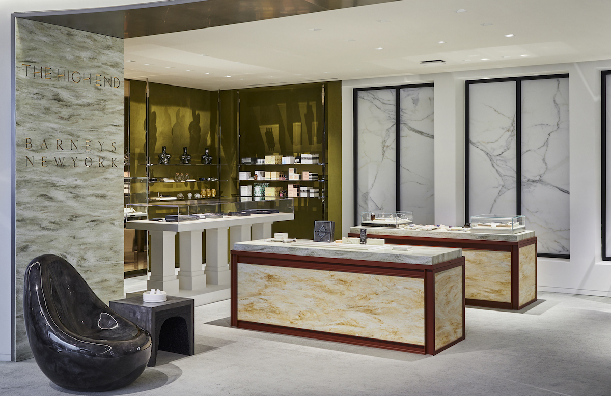 Eso hace que Barneys explore las posibilidades de captar el público creciente de maría, un consumo ya no entendido como algo marginal, sino de lujo. El packaging de los producto nos evoca al de los perfumistas y los acabados de la primera tienda en la que han testado este concepto, mármol veteado combinado con vitrinas bien podrían exponer joyería.