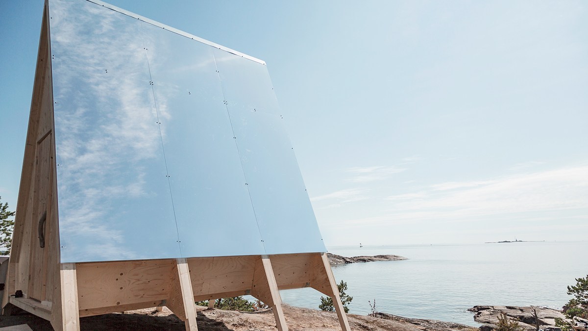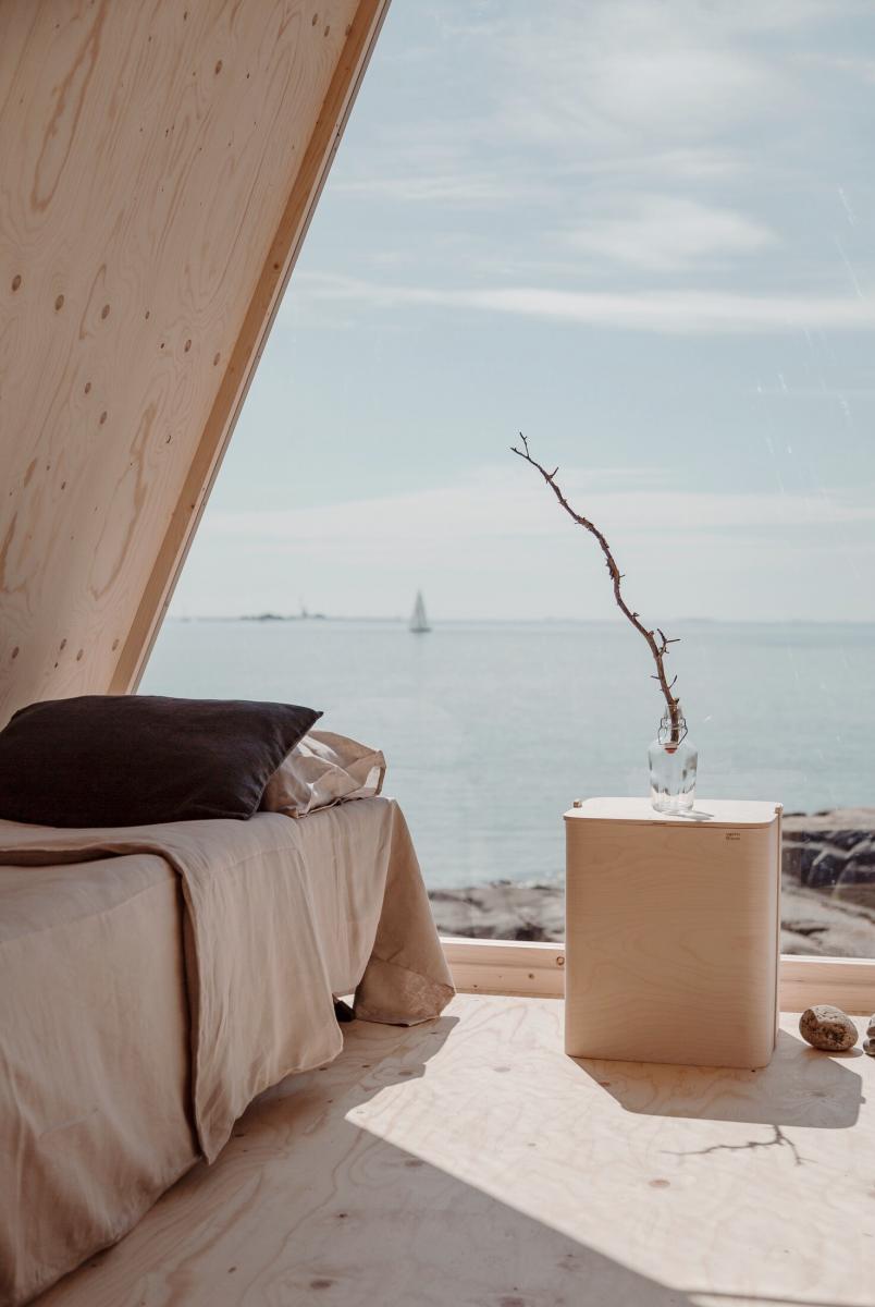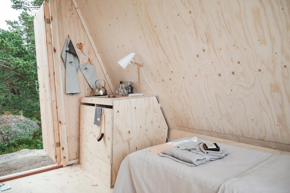 Su diseñador Robin Falck buscaba crear una propuesta móvil, que no necesitara del uso de maquinaria para su instalación y que pudiera estar hoy y mañana ya no, sin dejar rastro de su existencia. Diseñado con tornillos y pedestales adaptables a los diferentes tipologías de terreno y con la vocación de facilitar su reparación; una reflexión a como reducir nuestra huella. El inodoro, no contemplado en la cabina queda solucionado con la opción de un puesto en el puerto de la isla de Vallissari. La propuesta coherente también con materiales honestos y con una paleta de colores neutra.