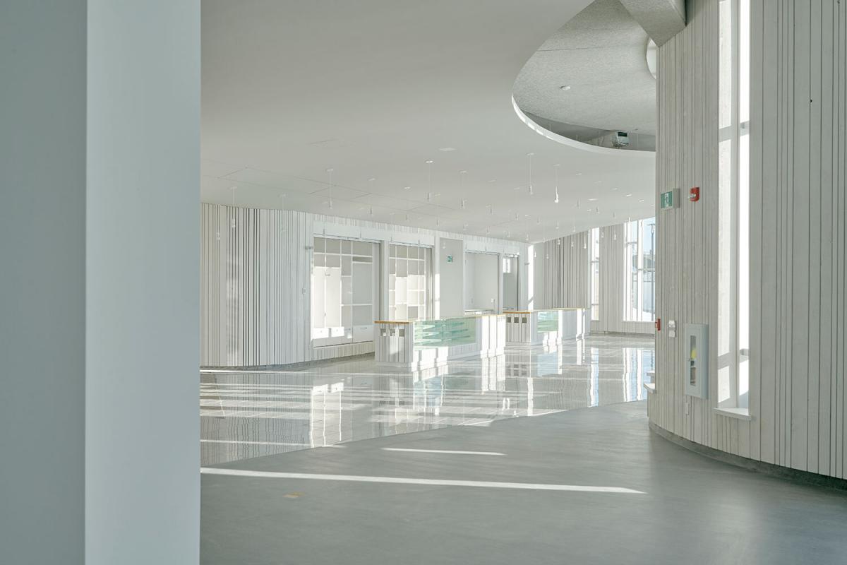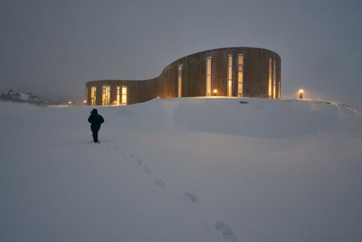 Esa sensación de cobijo fue lo que llevó al despacho a ganar el proyecto de Illusuak Center: diseñar un punto de encuentro además de un centro cultural para toda la comunidad Inuit , como si de un gran salón de una casa se tratara. Para el exterior de forma ondulada utilizaron madera de abeto tratada con un biocoating, que hace posible que esta madera más blanda pueda resistir las bajas temperaturas y que con el tiempo cuando envejezca y tienda al gris se mimetice con el paisaje.