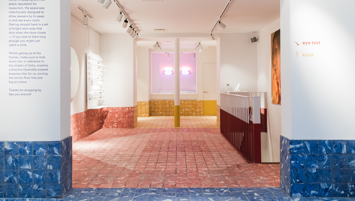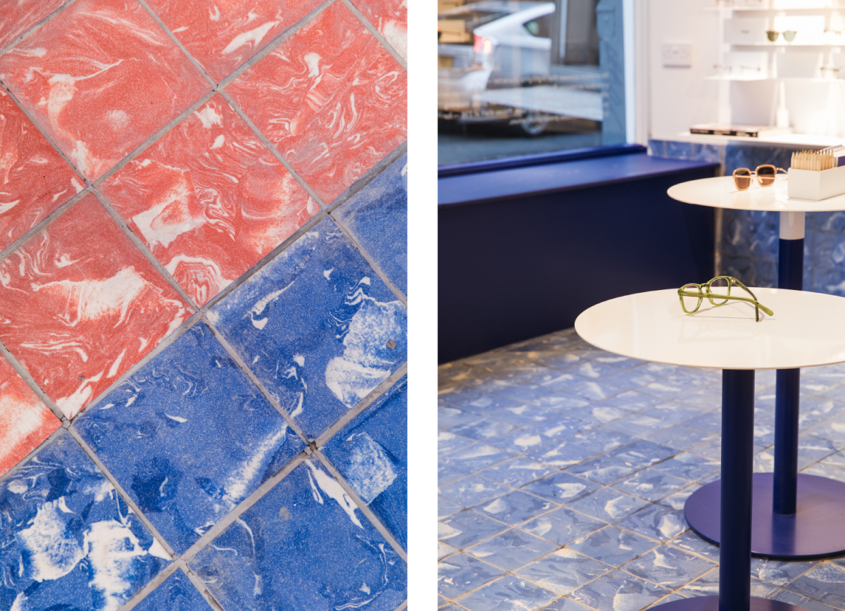 8000 azulejos con un acabado manual creaban un nuevo suelo en el pabellón Central de Chini Room durante la Biennale de Venecia de 2018. En el caso de la tienda insignia de Ace & Tate, tres colores definían los diferentes espacios y los azulejos en masa teñían los suelos acorde a esta división.