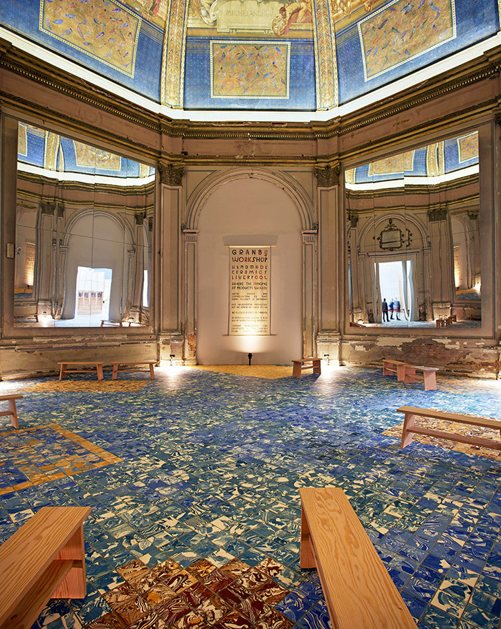 Granby Workshop ha vestido tanto la instalación “The Factory Floor” en la Bienal de Venecia como la flagshipstore de Ace & Tate en Brewer St Londres. Este colectivo que manufactura cerámicas para revestimientos y piezas de decoración, investiga los procesos de producción e incluye el azar como un ingrediente más en la formula de sus producciones así como la experimentación.