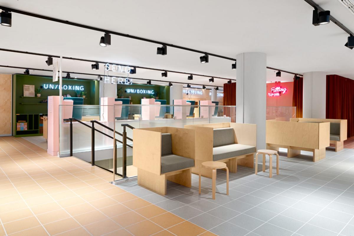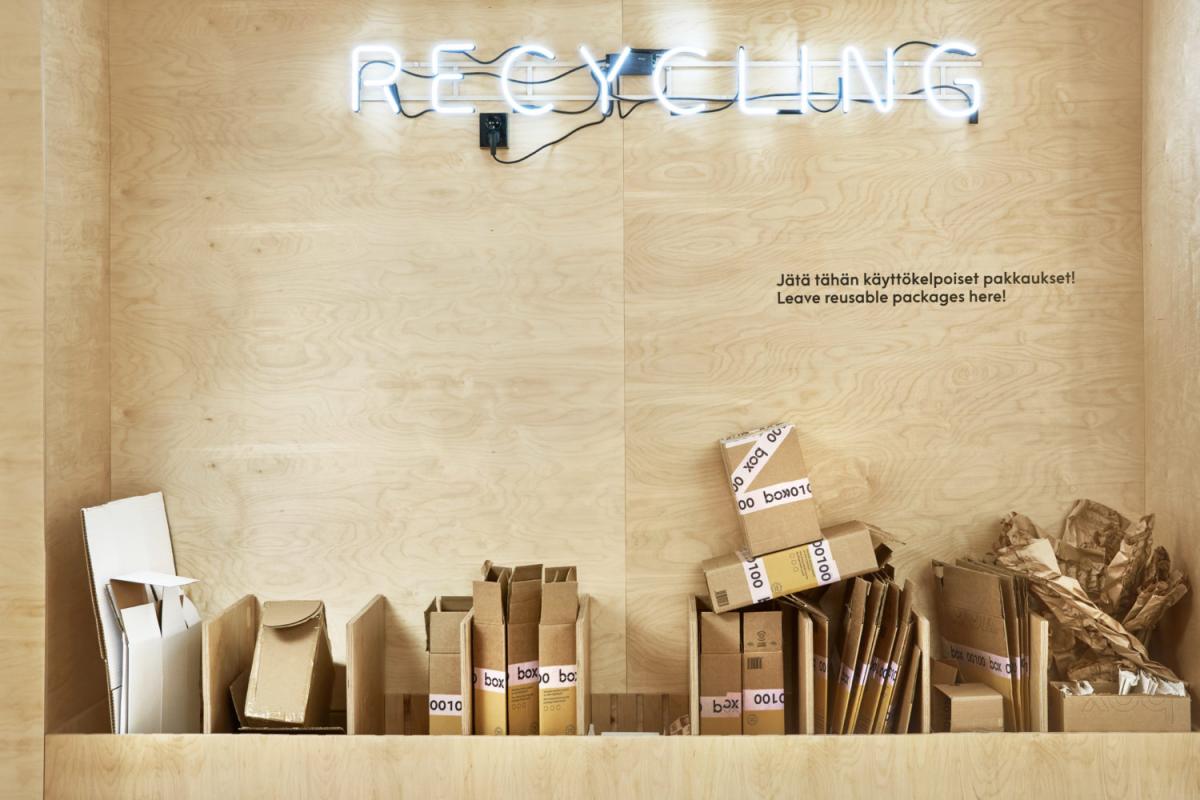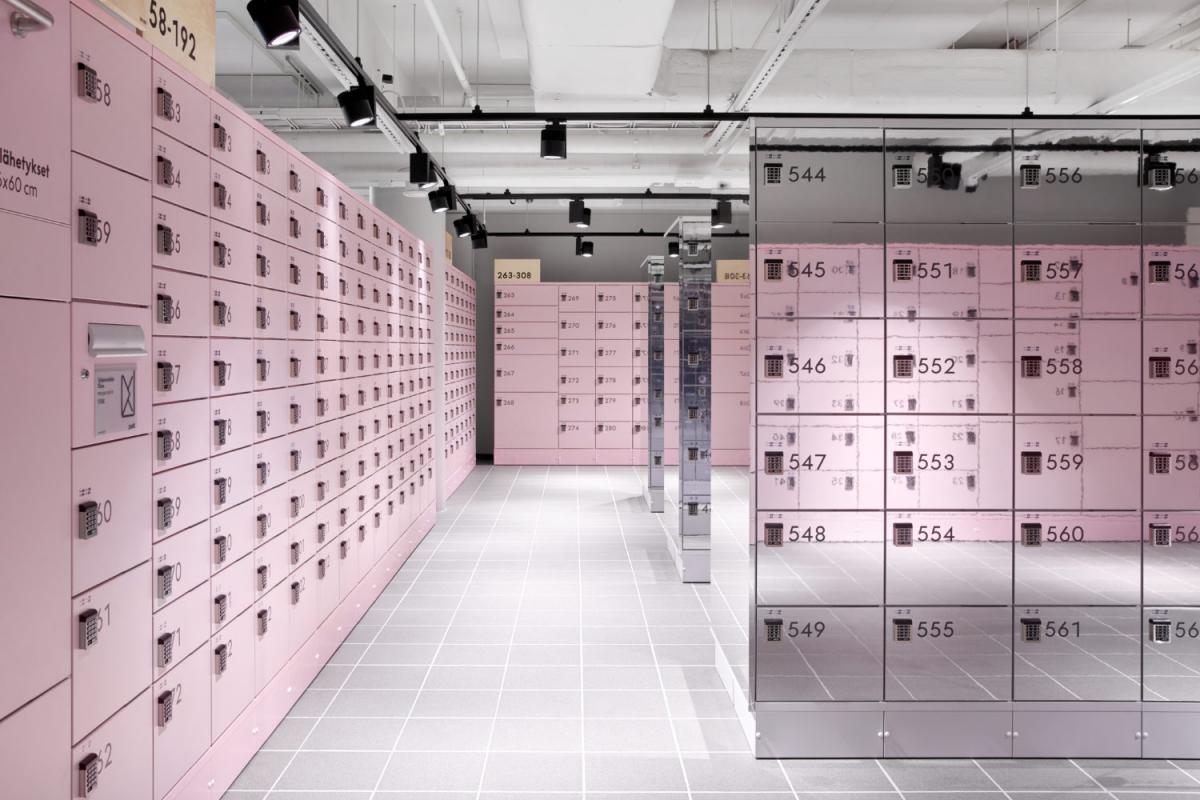 La pregunta qué se hicieron fue cómo deberían ser esos nuevos espacios, en los que había una clara voluntad de autoservicio. Otro reto que tenían frente a ellos era que ser atractivos, invitar a los transeúntes a entrar, evitar parecer espacios fríos; es decir aunar funcionalidad y estética. Así pues, se trataba de ir más allá de ser unos mostradores para empaquetar/desempaquetar. La apertura en el centro de Helsinki respondía a la fórmula en la que se combinó un área de probadores, con 600 taquillas de diferentes medidas y una zona de reciclaje de embalajes entre otras. Pero estas tres ponen el foco en la secuencia de uso: la persona recibe el paquete, se prueba la prenda y si todo está correcto, el embalaje se recicla y sino se procede a la devolución de manera ágil.