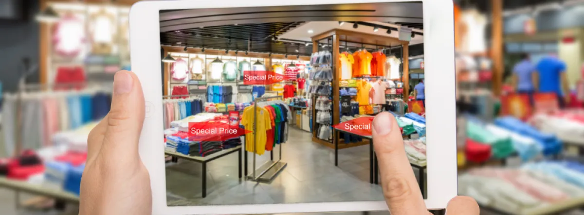 Los espacios comerciales pueden tener aplicaciones específicas o de terceros descargables para acceder a información adicional y características interactivas en la tienda. La realidad aumentada se utiliza para superponer elementos digitales, como información de productos o anuncios, en el entorno físico de la tienda.