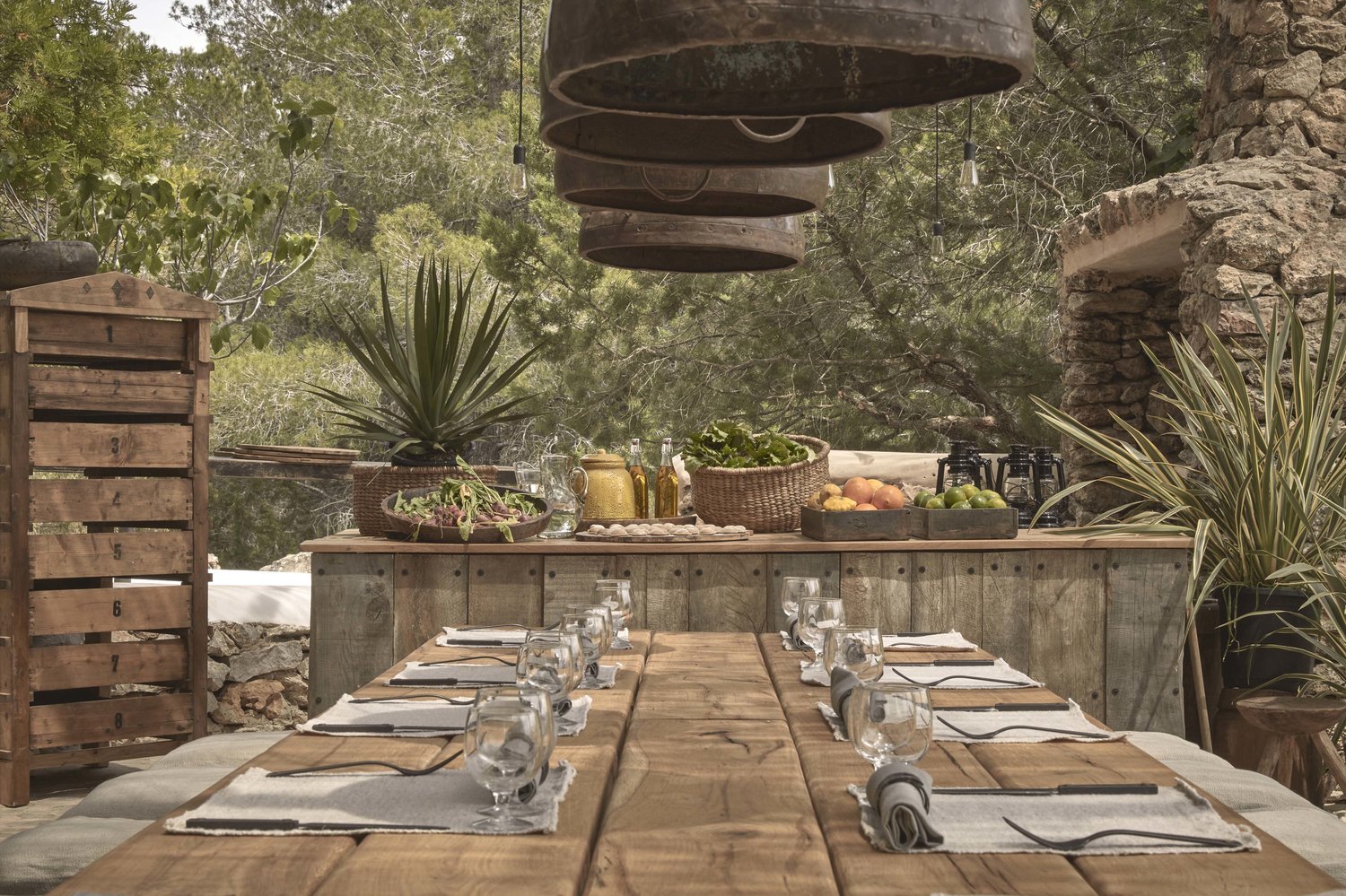 Partiendo de una ubicación única y con el objetivo de que la gente que se alojara estableciera relación con el entorno que lo rodea, con lo local. Tan sólo diez habitaciones, cada una con su propia distribución, pero que dan acceso a una terrazaa o un azotea, para fomentar la conexión con la naturaleza; con la isla de Ibiza pero en su esencia, rodeados de pinares y las terrazas de cultivo que se han recuperado y ahora se cultivan hasta 30 especies de hortalizas, vegetales, orgánicos.