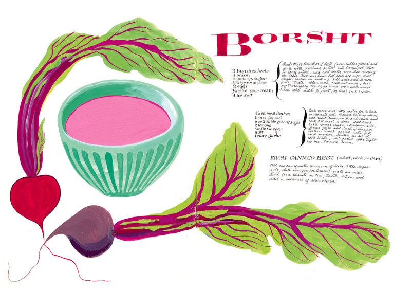 No hace mucho, Sarah Rich y Wendy MacNaughton descubrieron un manuscrito ilustrado en una feria de libros antiguos: mostraba una magnifica ilustración de remolachas de color rosa fuerte y una receta escrita a mano a su lado. Era difícil creer que tenía más de sesenta y cinco años. Empezaron a indagar, quien había hecho esta y muchas otras recetas ilustradas. La autora era Cipe Pineles, una pionera de la dirección de arte editorial para revistas de moda.