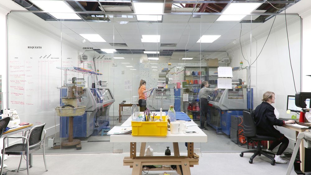 Unas máquinas de tricotar por control numérico, pueden “imprimir”, es decir, confeccionar, cualquier variable que hayas decidido en pantalla. Lo digital y lo tangible se mezclan para crear un nuevo concepto de empresa, que en realidad es el viejo esquema de “hecho a medida”.
