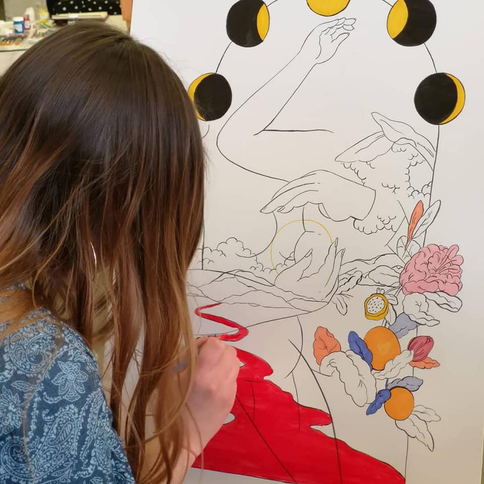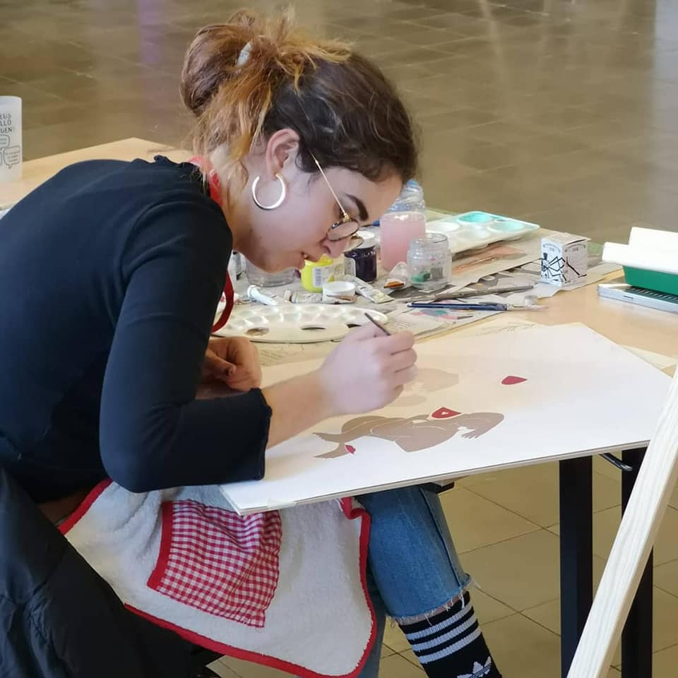 Carmela Caldart es una ilustradora brasileña afincada en Barcelona. En sus obras da voz, movimientos y volumen a las mujeres. Su trabajo es colorido, audaz y alegre, y toca temas importantes como los derechos de las mujeres y el feminismo. También anima sus ilustraciones convirtiéndolas en GIF animados. Ha sido la autora responsable de la campaña del 8 de marzo del Ayuntamiento de Barcelona.