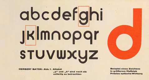 Empezamos esta serie con Herbert Bayer, quien fue, probablemente, el tipógrafo de mayor talento de los que pasaron por la escuela alemana, aunque su trabajo abarca también la pintura y sobre todo el collage fotográfico. Bayer Nació en Haag, Austria. De 1919 a 1920 fue aprendiz en el estudio del diseñador Georg Schmidtthammer, en Linz, donde realizó sus primeros trabajos tipográficos. En 1921 trabajó en el taller del diseñador Emanuel Margol en Darmstald. Poco después entró como estudiantes en la Bauhaus, asistiendo al taller de pintura mural con Oskar Schlemmer y Kandinsky. Walter Gropius director de la escuela se percató de su talento lo hizo profesor y poco después le nombro director del taller de impresión y publicidad.
