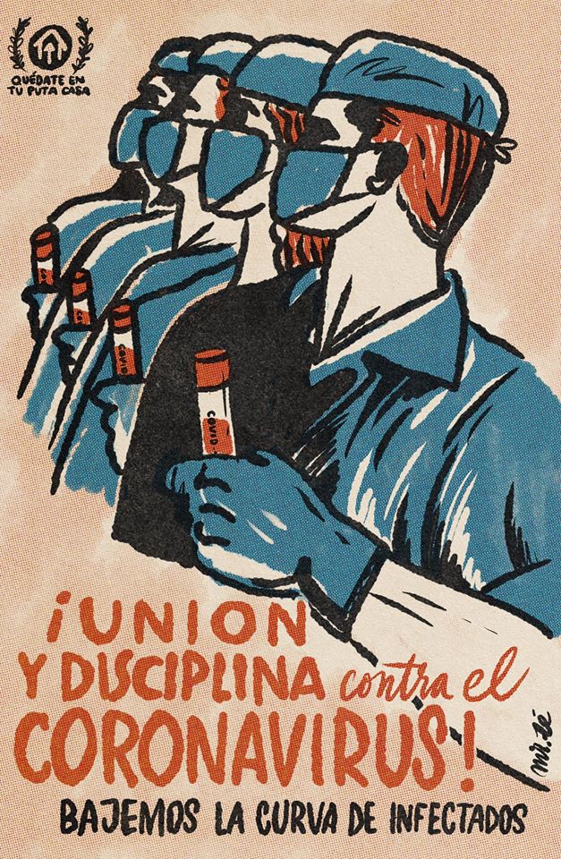Felix no es exactamente un ilustrador. Es más un letrista. Lleva años con el lettering, fuera de la ortodoxia de la profesión, trabajando en campos como el custom motero, la decoración mural y la rotulación manual de locales diversos. Su trabajo es brillante. Durante este confinamiento ha empezado una serie de carteles, alusivos a la situación, que han corrido por las redes como la pólvora. Los carteles tienen un lenguaje deudor del cartelismo bélico de la Guerra Civil y la II Guerra Mundial, entre el Art Decó y el Realismo Heróico soviético, aunque también tiene algo del cómic de los 50' y del Pop de los 60'. Sea como fuere, la mezcla funciona y ha conectado con un público muy amplio. En este artículo cuentan la historia de esos carteles.
