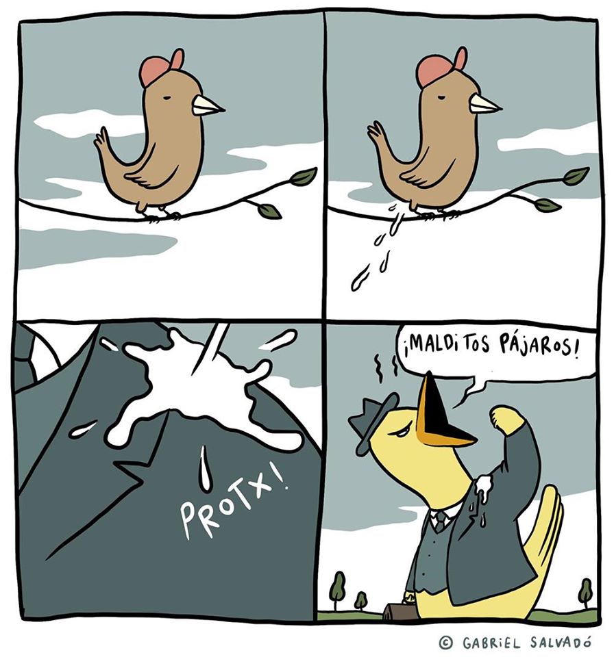 Los personajes de Gabriel parecen salir de un libro de Beatrix Potter balo los efectos del LSD. Una especie de fábulas campestres con conejitos, pajarillos y gentlemans pero con un humor ácido y absurdo, especialmente en la etapa en que tenían la cuenca de los ojos vacías. Me fascinan sus pequeñas historias que caminan entre la ironía y el cinismo pero siempre con ingenio. Sus enigmáticos personajes sin rostro tienen la capacidad de ser el principio de una historia que nos montamos como observadores y no el final de la que propone el autor. Vale la pena revisar su instagram paralelo, y rebuscar en sus trabajos antiguos.