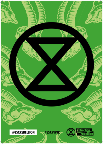 A partir de ahí, Extinction Rebellion (XR) usó este símbolo en protestas alrededor del mundo. El símbolo de extinción se pintó con pintura lavable en edificios del gobierno durante las protestas medioambientales en el Reino Unido, y en otras protestas a través de Europa. En abril de 2019, The Guardian describió el símbolo como "el símbolo de la paz de esta generación". Desde entonces, su viralización ha sido meteórica. Desde entonces se conoce como “el símbolo de la extinción”, aunque en realidad debería llamarse “el símbolo contra la extinción”.