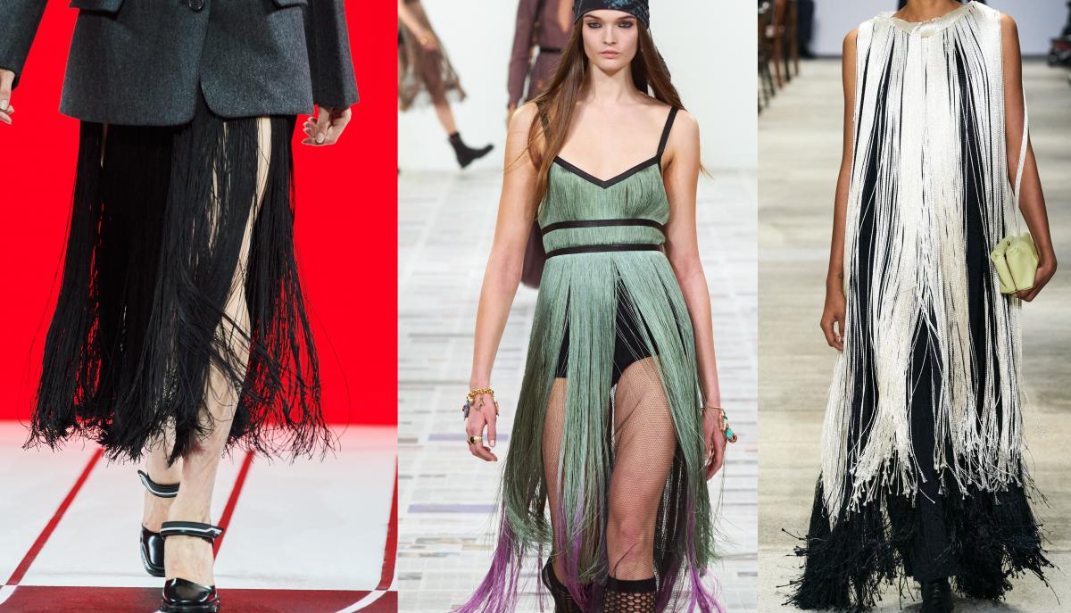 Los años 20 y sus vestidos de cocktail con flecos siempre fueron adorados por todos los diseñadores de moda. Este año no es una excepción pero se “deconstruyen” tomando su elemento principal: los flecos, lo cuales se añades a blazers, como en Prada, y otras prendas como los vestidos minimalistas de Dior o Jil Sander. Elemento dinámico nos dará la fuerza y ese toque chic que tanto precisamos en este extraño otoño.