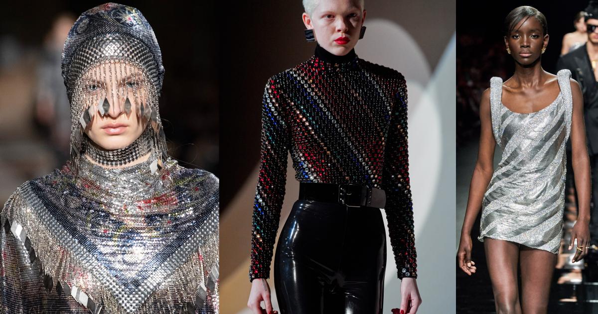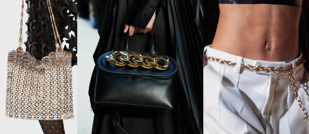 Vistos en prácticamente todas las semanas de la moda, parecía que todos los diseñadores se hubieran puesto de acuerdo por este detalle, desde las gafas de Stella Mcartney hasta las bailarinas de Gucci, los cinturones de eslabones de Saint Laurent, pasando indudablemente por el gran inspirador, Paco Rabanne, con marca renovada gracias a su actual director creativo Julian Dossena, el cual ha vuelto a poner de moda la estética retrofuturista del diseñador mítico de los 60, con nuevos it bags como el “Iconic 1969”.