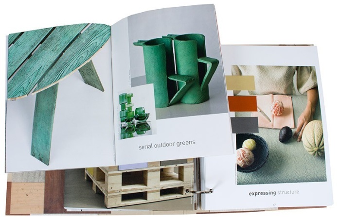Imágenes de productos de Li Edelkoort, arriba libro de tendencias y abajo su prestigioso colorido, teñido en algodón