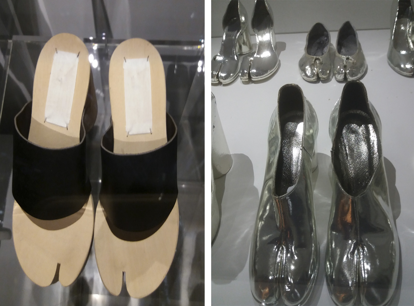 Su más famosa apropiación serán sus famosos zapatos “tabi” inspirados en los “jikitabis” japoneses, con una tira para aguantarse que el sustituye solo por una horma con esa forma, creando uno de los zapatos más icónicos del S.XX, indisociables de su ADN. La re-construcción de piezas del S.XVIII y de otras épocas de la historia también formarán parte de su ideario creativo.