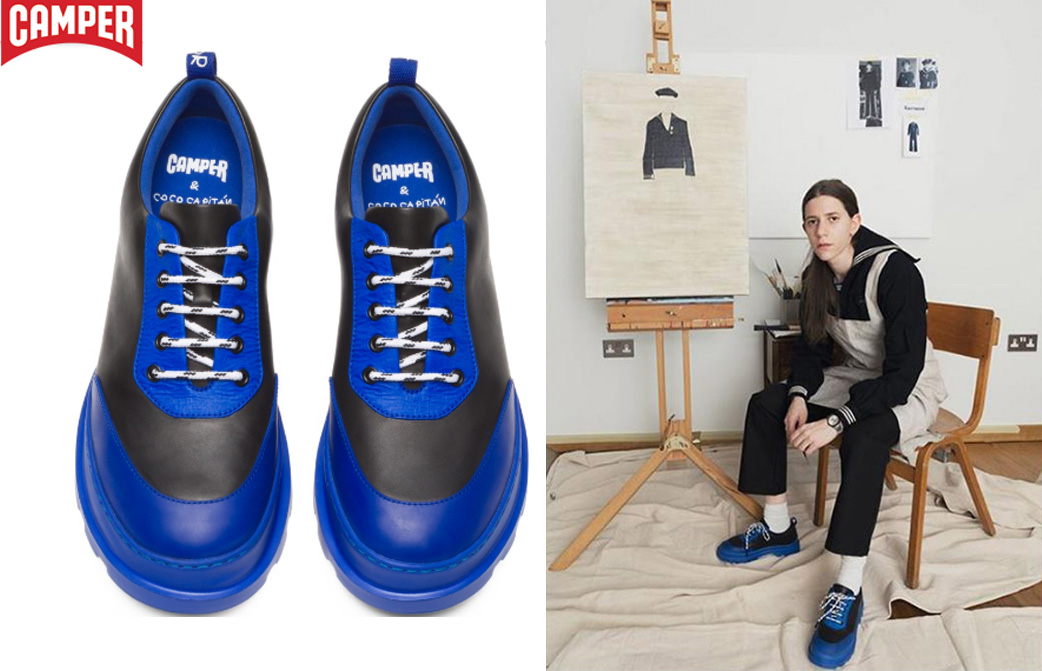 La artista sevillana Coco Capitán, conocida internacionalmente sobre todo por colaborar con GUCCI con sus ilustraciones realizadas a partir de su caligrafía, ha colaborado con la marca española de calzado CAMPER en un diseño para su icónico modelo Brutus. El mar y los marineros forman parte del ADN estético de Coco Capitan, por lo que The Lost Sailor Shoe, así se ha denominado a la pieza, posee muchos de estos referentes: los cordones están inspirados en las amarras, los colores combinan azul intenso con azul marino, y el zapato está construido inspirándose en múltiples detalles náuticos. Los zapatos se entregan en una mochila confeccionada con spinaker el tejido característico de velas de usadas previamente en las competiciones de vela, es concreto en la mítica copa América y en la Volvo Ocean Race.