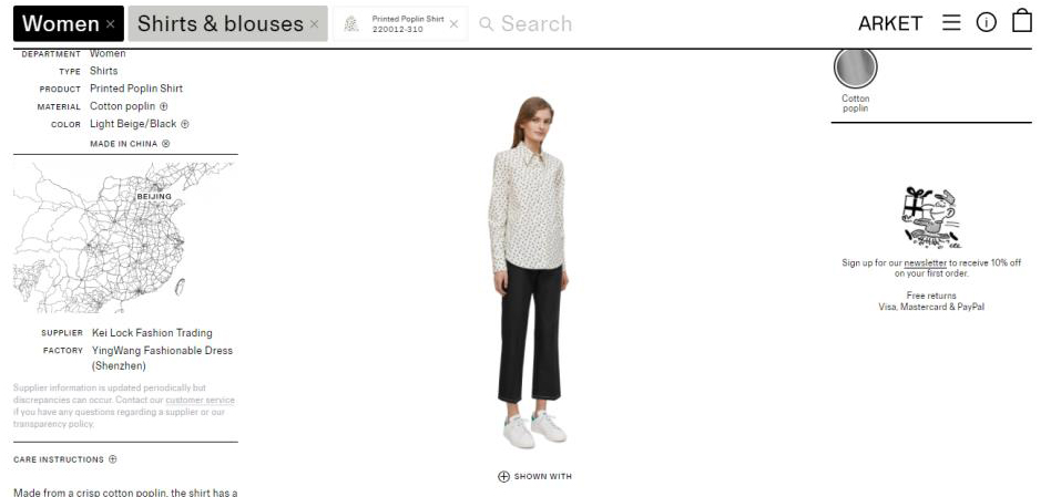 Los consumidores pueden conocer en la web de la marca el origen de sus productos. Esto es verdaderamente revolucionario ya que los puntos de producción son uno de los secretos mejor guardados de la industria, entre otras razones por miedo a la competencia y a las copias.