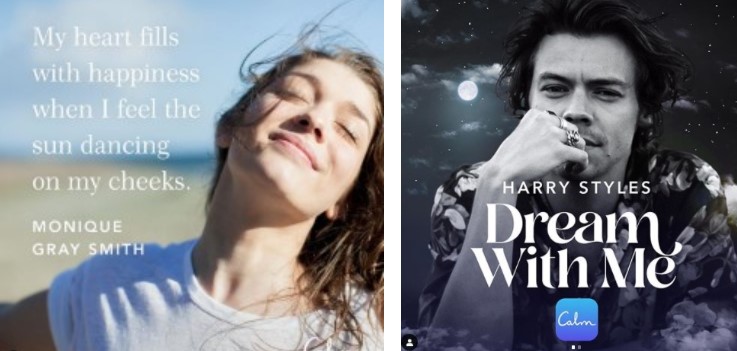 Imágenes de la app para meditar CALM, la cual incluye sesiones de DJ