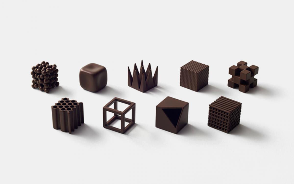 En 2015, el estudio de diseño Nendo presentó en Maison & Objet una colección de 9 tipos diferentes de chocolate. Aun siendo todos del mismo tamaño y composición, cada uno albergaba una forma distinta y con ello, una experiencia sensorial única respecto a las demás. Existen muchos factores que determinan el sabor de un chocolate y el diseño puede resultar un excelente aliado para su exploración.