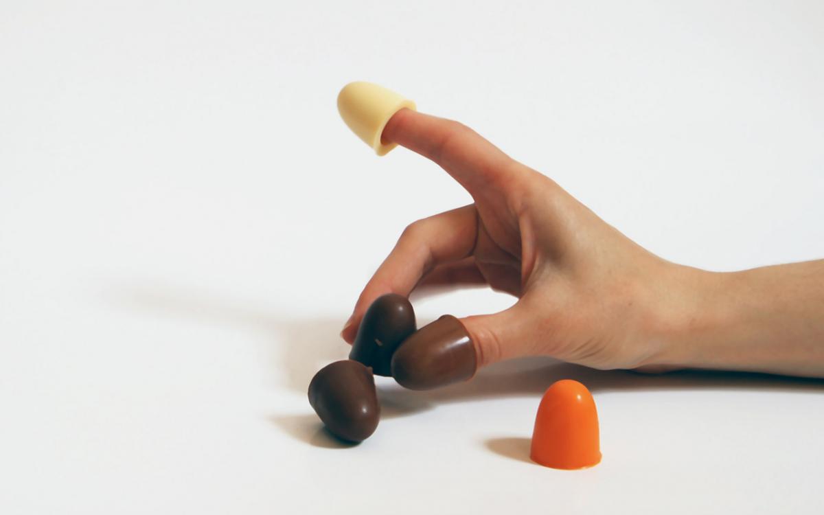 Ruth y Xavi integran el estudio de diseño Compeixalaigua. De un workshop organizado por Surido con Chocolat Factory surgió este peculiar bombón con forma de dedal para -literalemente- chuparte los dedos.