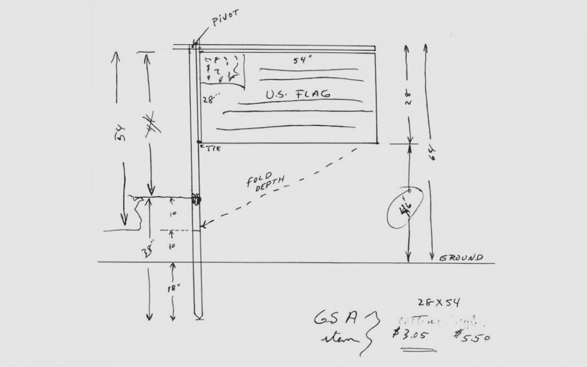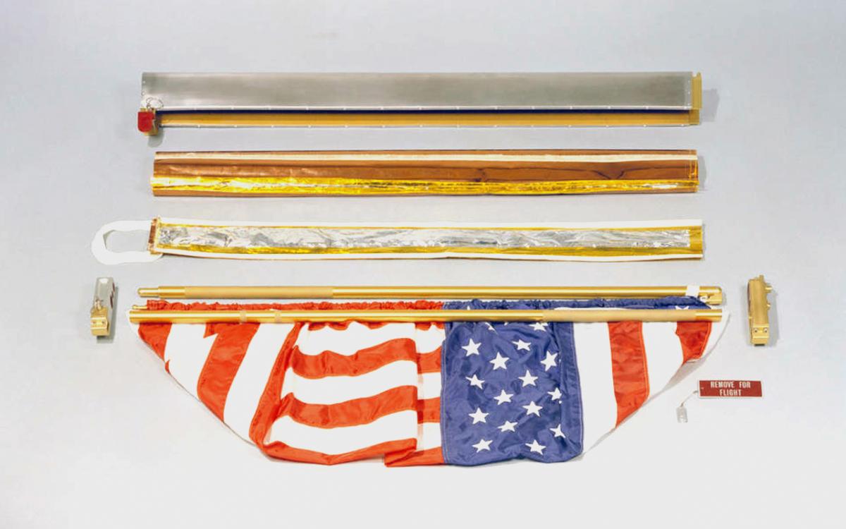 El ingeniero Jack Kinzler, integrante de la NASA, fue el encargado de diseñar el nuevo mástil para la bandera. Una solución prevista de un poste vertical convencional, pero que disponía de unas bisagras en la parte superior que lo unían a una varilla que sujetaba la bandera en posición horizontal. Una solución sencilla y efectiva para la que Kinzler se inspiró a partir de unas cortinas domésticas. Un buen diseño posibilitaría una de las imágenes más comentadas de los últimos 50 años.