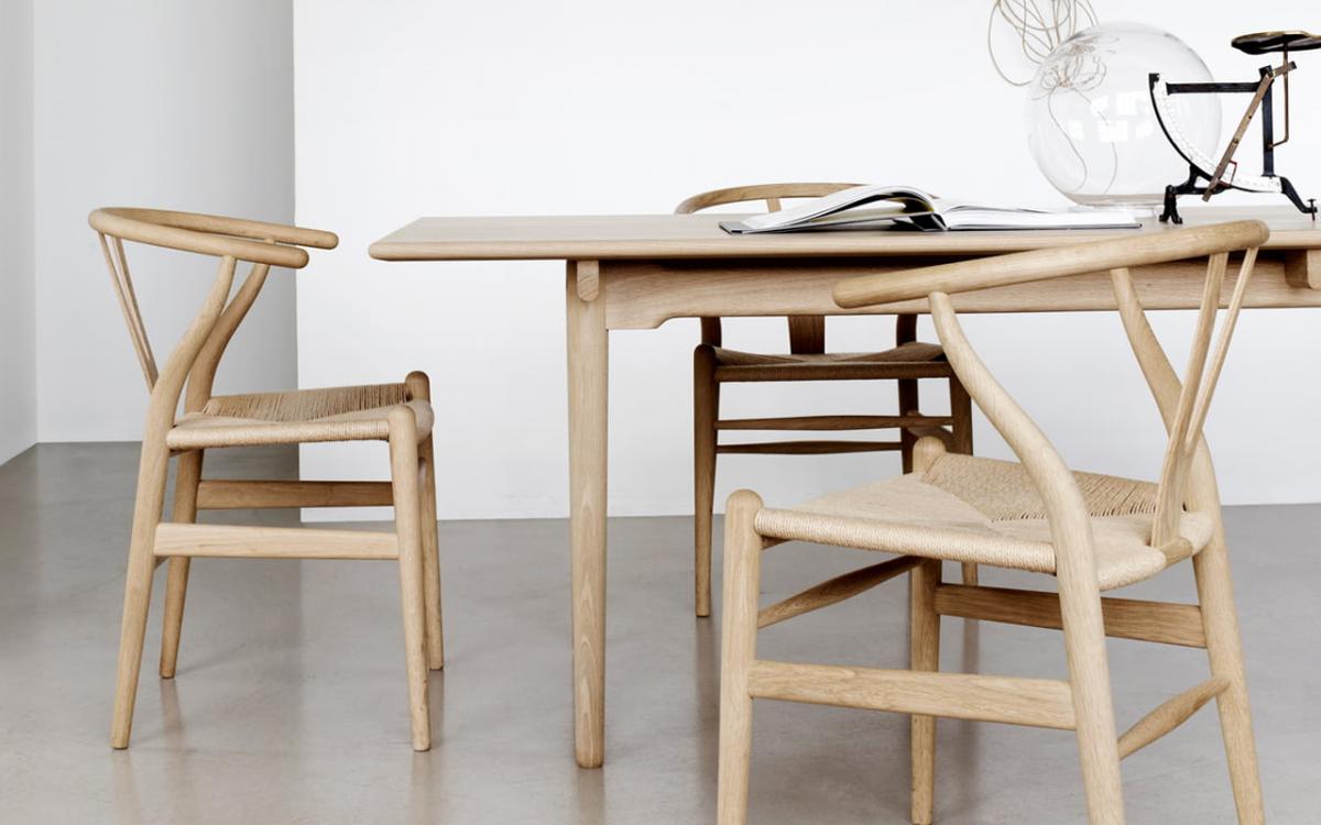 De 1944, encontramos la silla China ; editada actualmente por Republic of Fritz Hansen, supone una referencia explícita a las sillas fabricadas bajo la dinastía Ming. De 1950, destaca la silla Wishbone , un modelo que adapta el mismo lenguaje, albergando algunas similitudes formales con la anterior pero depurando y sintetizando el modelo de 1944 y alejándose de la carga formal de las piezas referenciales. Editada actualmente por Carl Hansen & Søn, la silla Wishbone es uno de sus diseños más apreciados. En los modelos Elbow , CH8 8 y PP58 , descubrimos también referencias más o menos explícitas a modelos fabricados en China durante los siglos XVI a XIX.