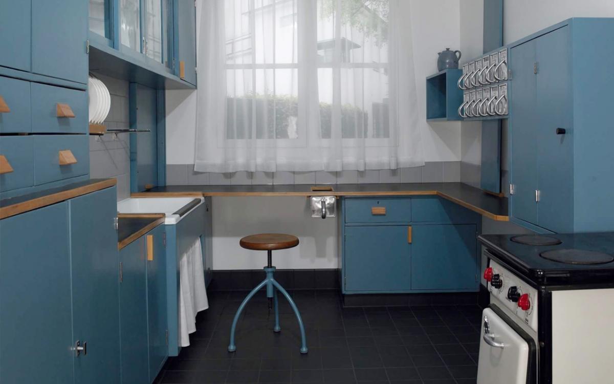 Una cocina que fue diseñada en 1926 por la arquitecta austriaca Margarete Schütte-Lihotzky y que se convertiría en la nueva cocina moderna. Relativamente estrecha, organizada en dos espacios, la cocina tenía una entrada, en frente de la cual, se encontraba una ventana. Su disposición estrecha tenía por objetivo reducir al mínimo el número de pasos necesarios y facilitar así su uso. La cocina disponía de compartimientos etiquetados específicamente para los ingredientes más comunes y un espacio de trabajo equipado con un cajón integrado para la basura.