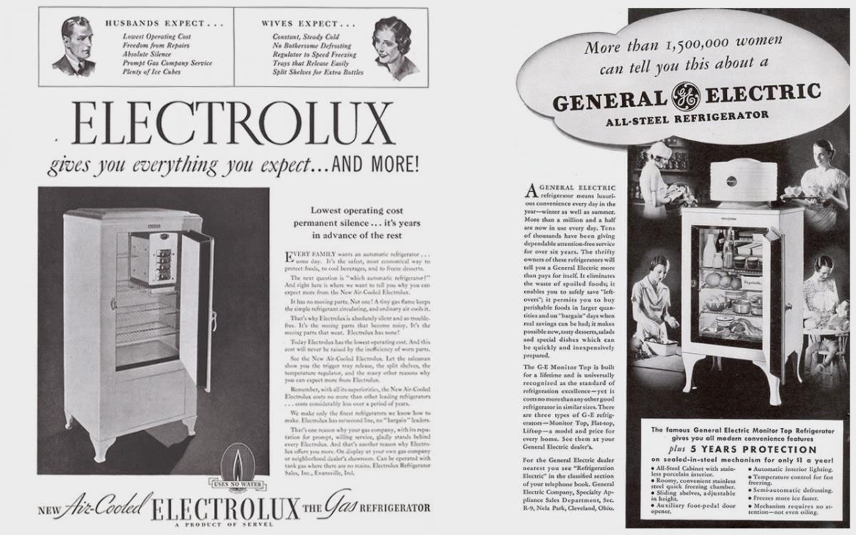 Anuncios de los frigoríficos de Electrolux y General Electric.