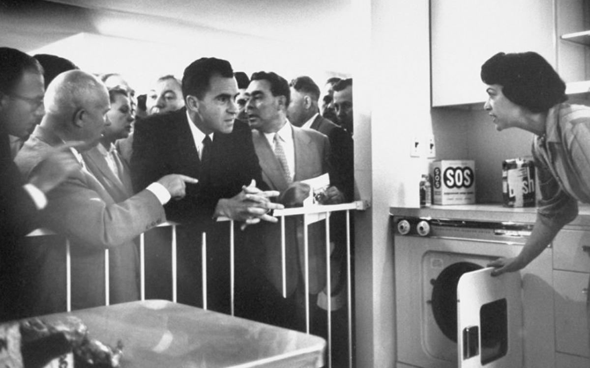 En 1959, durante la guerra fría entre los Estados Unidos y la Unión Soviética, ambos países decidieron organizar sendas exposiciones para reflejar las bondades que suponían sus respectivos modelos económicos. La Unión Soviética decidió mostrar en Nueva York sus últimos logros en el campo de la aviación espacial, mientras que Estados Unidos decidió exponer en Moscú, un arquetipo de vivienda suburbana. Durante la inauguración, de la exposición, la cocina de la casa propiciaría una legendaria polémica entre los presidentes Nikita Jruschov y Richard Nixon, que se encauzaron en una discusión sobre la misma y el nivel de vida alcanzado por sus respectivos modelos económicos.