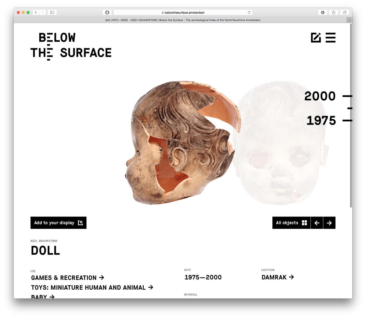 Esta página web es parte del despliegue del Ayuntamiento de Ámsterdam sobre estos 700.000 hallazgos. De ellos, 10.000 se expondrán en una nueva estación de Metro que se inaugura el 22 de julio. Esos y otros 3.000 objetos se incluyen además en el libro de fotografías Stuff (Cosas). El resto serán almacenados en dependencias municipales.