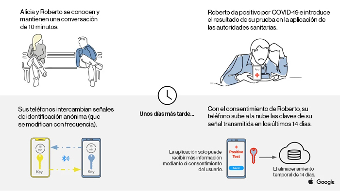Por supuesto, este recurso tiene un doble filo. ¿Qué ocurre con nuestra intimidad? Muchos expertos en redes y control de información, están avisando de los peligros que entrañan este seguimiento personal y las posibles consecuencias. TrackCOVID, es una de estas Apps y trabaja creando un gráfico anónimo de interacciones. Cada vez que una persona se reúne con otros o va a un lugar público, puede utilizar la aplicación para registrar contactos, ya sea alojando o uniéndose a un punto de control, lo que permite descubrir posibles vías de transmisión de virus. Por otro lado: Apple y Google están colaborando en el desarrollo de un software para dispositivos iPhone y Android que ayude a rastrear la propagación del coronavirus (COVID-19). Dicho software indicará a los usuarios si han tenido contacto con alguna una persona contagiada y están potencialmente enfermos. Para que la herramienta sea realmente eficaz deberá ser adoptada por una gran proporción de la población. En Singapur, el 12 % de la gente se instaló la aplicación TraceTogether, que también utiliza Bluetooth para rastrear el contagio. Las autoridades sanitarias deberán crear aplicaciones que puedan usar esa API. Finalmente, la idea todavía depende de que haya pruebas generalizadas, rápidas y fiables para que las personas puedan saber si están realmente contagiadas.