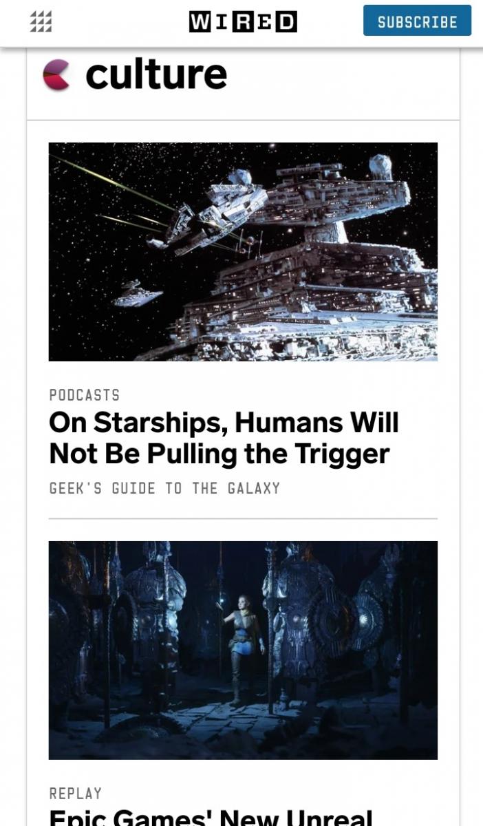 Respecto a medios sobre tecnología los cuales, por su propia temática están muy predispuestos en trabajar con nuevos soportes. Hay que mencionar, sin lugar a dudas a Wired. Son pioneros en un magazine tecnológico. Desde que se fundará, allá por 1993, Wired ha despertado tantos admiradores como fervientes detractores por el espíritu liberal de sus páginas, su utopismo tecnológico, y su atrevido diseño gráfico. Ellos dieron el salto a internet de los primeros, se adaptaron a una versión multisoporte de los primeros y, como no, repensaron su versión de móvil para que esta tuviera un sentido propio en el dispositivo sin ser una simple adaptación de la versión web. Valga como ejemplo de lo que digo una reseña en El Mundo del 2010 cuando no hacía tanto que las tablets habían hecho su aparición y Wired apostó por una fórmula que ahora llamamos responsive: “Si giras el iPad tienes el mismo contenido, palabra por palabra, pero distribuido de forma diferente por la página. Es increíble, una obra maestra de la maquetación y el diseño. Incluso los anuncios cambian de formato según la posición de la tableta y algunos aprovechan este juego para tener cierta interactividad. Es fantástico, en serio, da gusto leerla y me recuerda a la genialidad de esos números de finales de los 90 en los que incluso la publicidad era interesante”. Para algunos, el Wired actual ya no tiene aquella valentía de los inicios pero sigue siendo un medio de referencia.