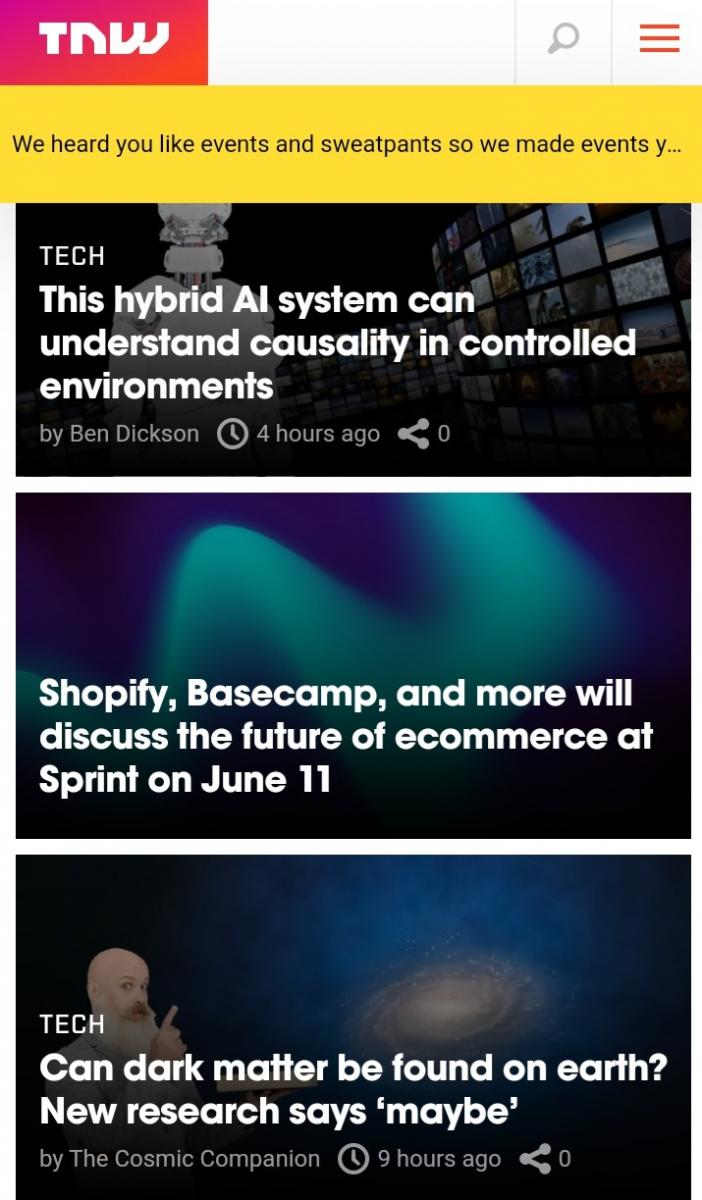 The Next Web (TNW) es un sitio web/magazine y una serie anual de conferencias centradas en nuevas tecnologías y nuevas empresas en Europa. Es algo así como un Wired de este lado del charco pero curiosamente la publicación online surge de un congreso anual que se celebra desde el 2006 en diferentes lugares de Europa y que intenta explorar el futuro de internet. Según TNW Hay un grupo grande y creciente de personas que tienen un interés especial en la tecnología, la llamada Generación T. Su necesidad de información, datos y conexiones personales está aumentando. Es a esta generación a la que se dirige el medio. En todo caso, la versión móvil inteligente porque se olvida de esquemas complejos y funciona como un blog compacto y bien construido.