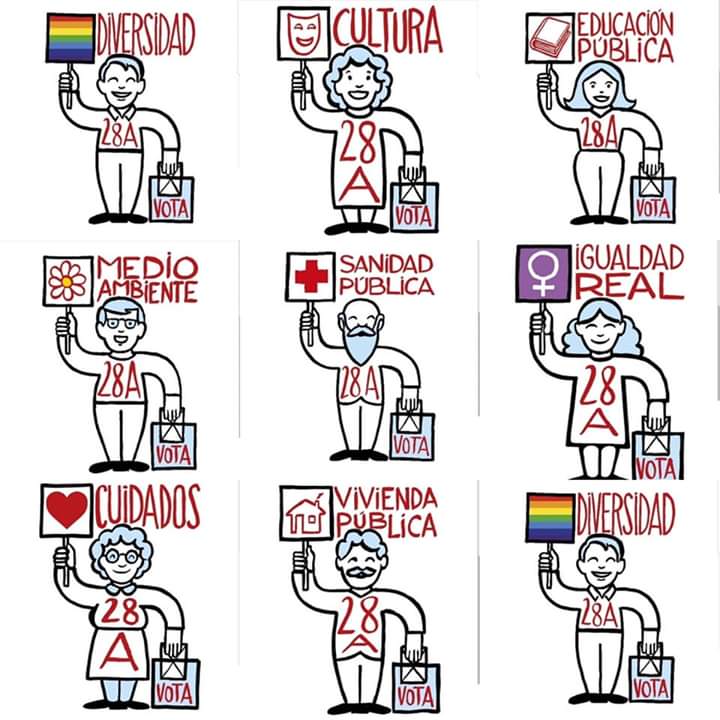Pero más allá de los partidos, el activismo en la red también se hace desde fuera de sus estructuras. Estas elecciones serán recordadas por los intentos de combatir la abstención, que parecen haber tenido éxito, a tenor del alto grado de participación. El hashtag #votaporfavor y una cuenta de instagram bajo ese nombre recogió centenares de piezas gráficas para activar el voto de los que suelen quedarse en casa. Con una orientación claramente de izquierdas pero sin pedir el voto para ningún partido concreto, la idea era impedir el ascenso de la extrema derecha, pronosticado por algunas encuestas. Las propuestas venían desde colectivos como el LGTB, feministas, ecologistas, etc, pero también desde particulares. Ilustradores, diseñadores gráficos, publicistas y todo tipo de creativos han aportado piezas. Algunas eran gifs animados, otras se basaban en aquello que se ha llamado marketing de guerrilla o contra-publicidad. Sea como fuera el despliegue de creatividad, humor y buen rollo que se ha visto en esta especie de campaña espontánea ha sido quizás lo más refrescante del periodo electoral. Os pongo algunos ejemplos para ilustrar este post.