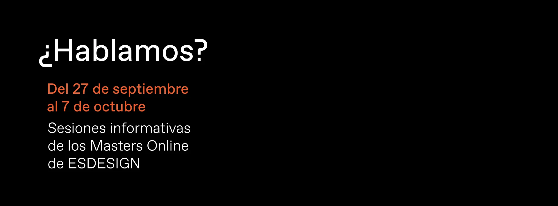 Del lunes 27 de septiembre al 7 de octubre, te invitamos a participar en las sesiones informativas de los masters ESDESIGN, que impartirán los Directores y Directoras de Programa.