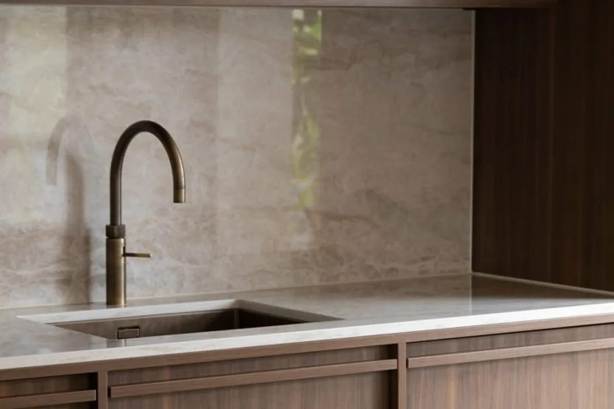 El diseño pone en valor elementos originales como el mosaico Nolla, las molduras, la volta catalana y las vidrieras, combinándolos con una estética mediterránea contemporánea. Materiales naturales, tonos suaves y una distribución clara generan espacios cálidos, personalizados y coherentes en todas las estancias.