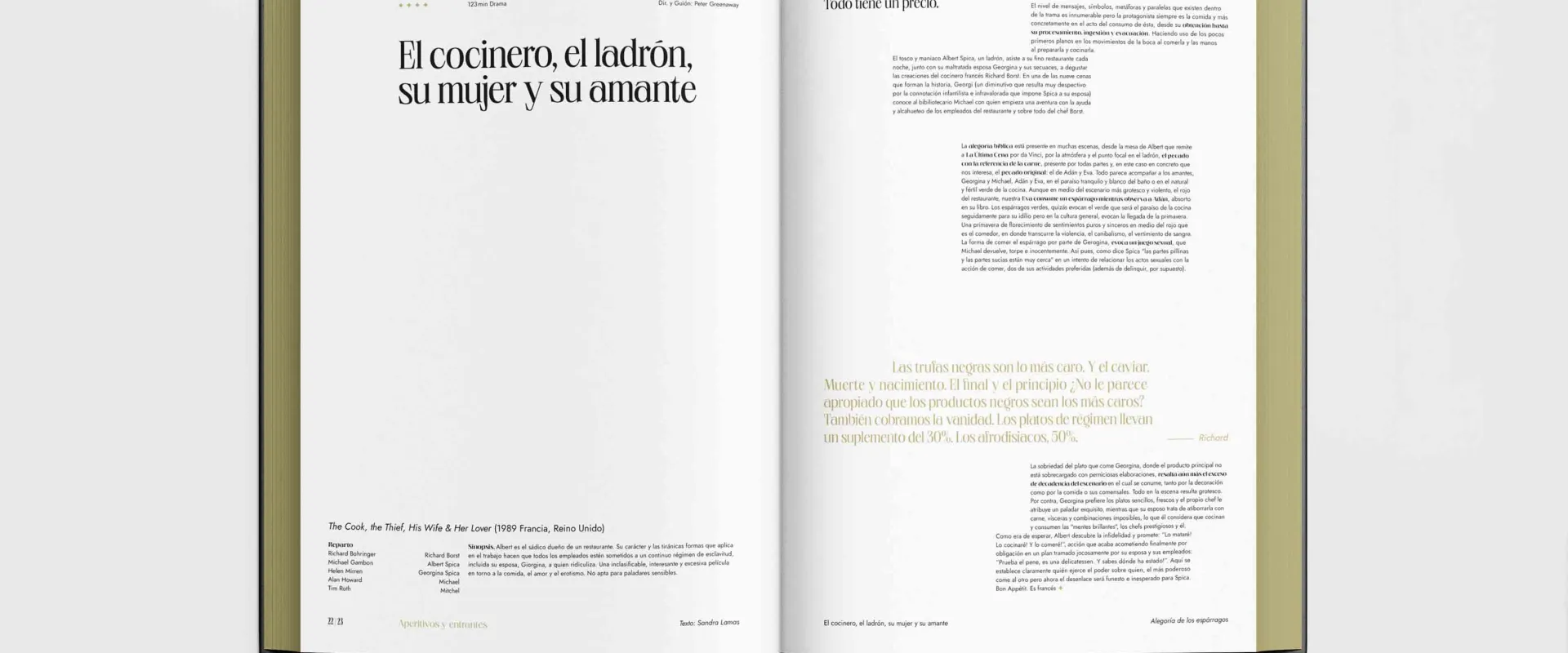 Recetas predilectas, míticas, literales o evocativas que te harán tener, tanto en editorial como digital, una experiencia completa, adentrándote más aún en las historias contadas a través del cine, saboreándolas mientras las observas. Bon appetit!