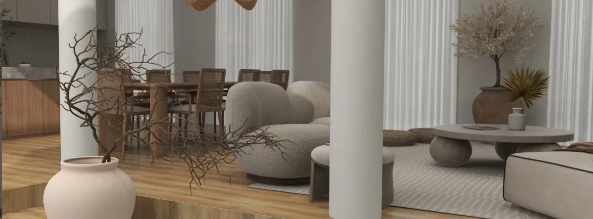 Este proyecto de diseño de interiores residencial aborda la transformación de una vivienda concebida para una familia multigeneracional con perfiles creativos y espirituales. La propuesta reorganiza el espacio integrando zonas sociales, áreas privadas y espacios híbridos como un jardín interior, un salón de Reiki y un taller artístico, creando un hogar donde bienestar y funcionalidad conviven de forma natural.