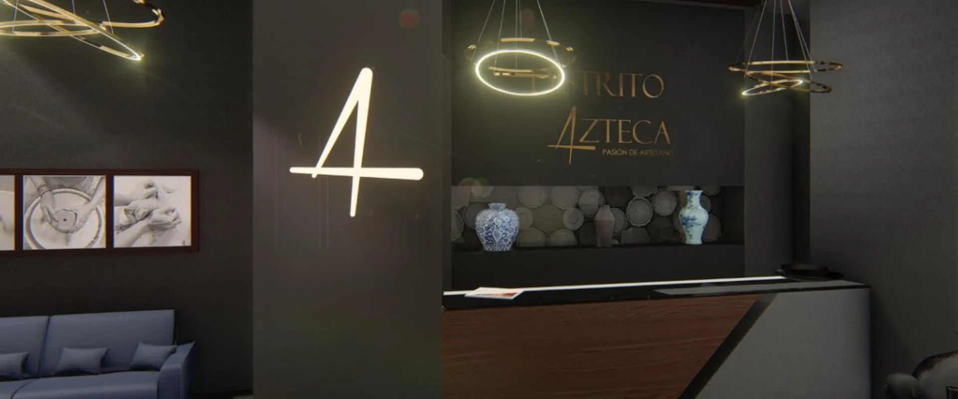 Distrito Azteca se dedica a la selección y venta de las mejores piezas de diseño artesanal de cerámica y joyería mexicana. El objetivo comercial del proyecto es transmitir un espacio sobrecogedor, muy elegante, que resalte el carácter de unicidad de las piezas y que invite al cliente a recorrer y permanecer en el lugar. Los valores resaltan el respeto y la dignificación del artesano mexicano, revalorizando su trabajo. Los productos que encontramos en la tienda son estacionales, no presentan alta rotación de modelos ni estilos. Son productos de diseño clásico que no entran en el circuito de la moda.