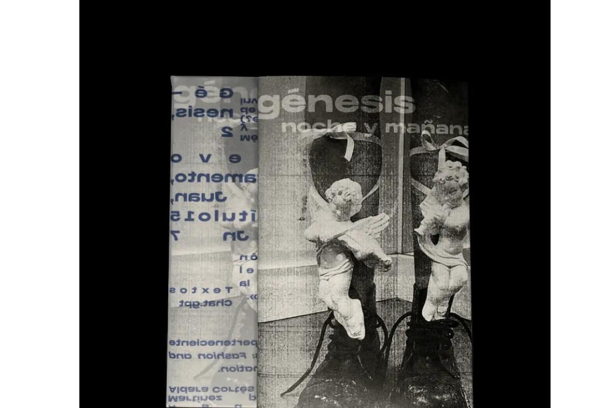 Génesis es una serie de siete fanzines que explora la apropiación de símbolos religiosos por parte de tribus urbanas. Inspirándose en la contracultura, cada fanzine aborda temas como moda, arte, música y tatuajes, conectando la simbología cristiana con la expresión de grupos que desafían la norma establecida. Esta serie toma el número siete del relato bíblico de la creación, culminando en un último fanzine sobre lo absurdo.
