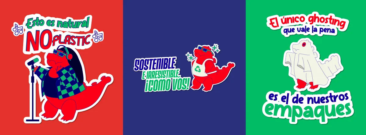 Goodzilla se comunica con sus consumidores a través de un lenguaje accesible y visualmente llamativo. El personaje de la marca simboliza los valores de sostenibilidad y conciencia social, buscando transformar los hábitos de consumo hacia opciones más responsables.
