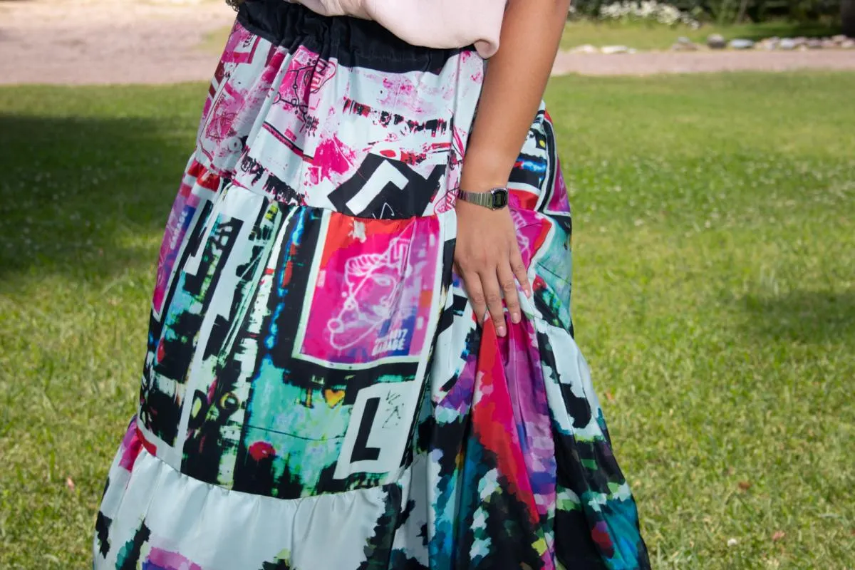 Kalos es una marca de indumentaria femenina, sostenible y ética. Su ADN se basa en reciclar textiles en desuso aportándoles una nueva existencia, con estampados en arte digital inspirados en el mundo de las mujeres. Conferiere valor exclusivo a las prendas, por medio de una elaboración de calidad y con propuestas de diseño creativas y muy coloridas.