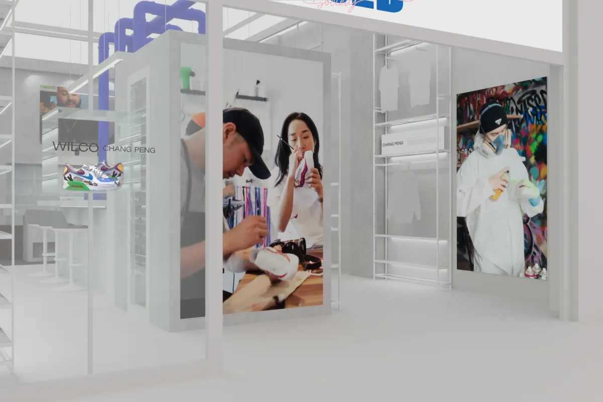 El espacio se organiza como un recorrido experiencial, donde conviven áreas de customización, workshops, exposición de artistas y venta de productos especializados. La combinación de diseño espacial, tecnología y storytelling transforma el acto de compra en un proceso activo, guiado y memorable para el usuario.