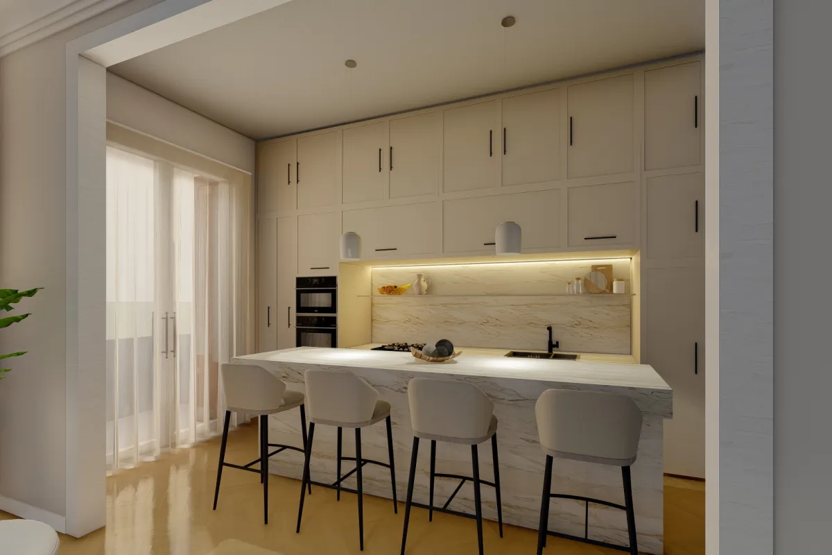 Este proyecto representa una síntesis perfecta de los estudios y la pasión del grupo por la decoración. La propuesta de diseño se centra en crear una imagen de armonía, elegancia y tranquilidad, respetando el estilo del departamento. Optando por un estilo clásico contemporáneo, combinando la sofisticación atemporal con la frescura moderna. Se utilizaron colores suaves y textiles cálidos para aportar serenidad y confort, mientras que la madera, como elemento predominante, introduce una dimensión natural y orgánica.