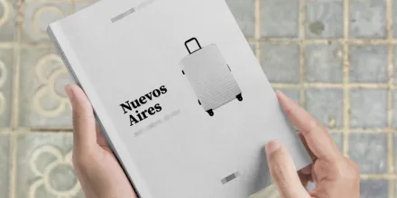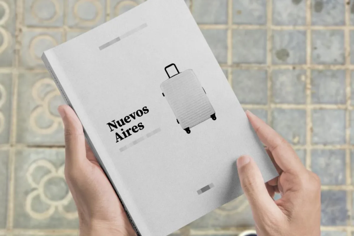 Inspirado en el disco homónimo de su grupo musical, Nuevos Aires vincula emociones y reflexiones en una pieza narrativa que establece un diálogo entre la palabra escrita y la música. Cada decisión de diseño busca transmitir autenticidad y crear una conexión íntima con el lector, integrando texto, fotografías y melodías en una obra que explora la búsqueda de identidad en un contexto cultural distinto.