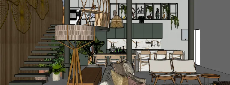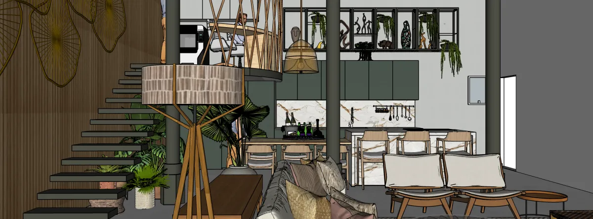 Este proyecto de diseño de interiores residencial parte del concepto de continuidad espacial, eliminando límites rígidos entre estancias para crear un hogar fluido, funcional y conectado. La propuesta responde a las necesidades reales de una familia diversa, integrando vida social, trabajo, descanso y ocio en un mismo espacio.